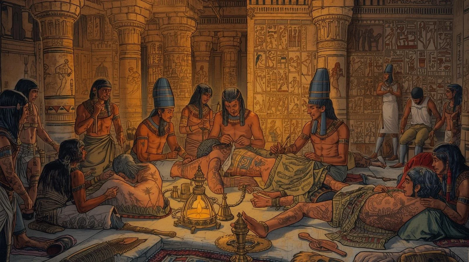 Historical and philosophical grounding, showing how tattooing appears in Egypt and the Greco-Egyptian world, and how its later disappearance is rooted in cultural suppression rather than conceptual incompatibility.